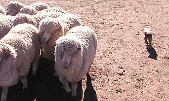 "Hello Bilsons, My oldest brother wanted to see Pedro and I let him in with 7 billy kids. Pedro did a wonderful job. His distance, cover, strength, and eye were all in place. My wife commented that he appears to be a problem solver. I better step on my brakes. You, as well as my Dad, have reminded me to let this pup mature. I bet he'll do things that folks over here have never seen before. I suppose herders from down under see good dogs all the time, but one doesn't see many over here, not doing real work out on the range anyway."