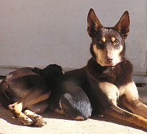 Noonbarra Amy looking after one of Noonbarra Lizzie's pups.