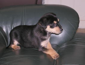 Thought you may like to know how Bonnie is doing. She is growing so quickly and her personality is certainly starting to show. She now has one ear up and the other almost up. She had her first trip to our Vet today for vacs etc. He was very impressed with her.