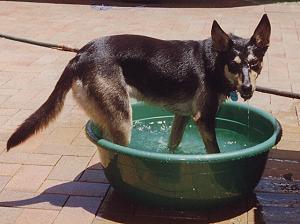 I have started swimming now and boy do I love it. I wake Mum up early each morning and we rush to the beach. (Dad stays in bed. He likes to sleep in a little later than 5:30 am.) Mum has to have her walk first (boring) and then if I am a good girl, I am allowed to have a swim. When we get to the beach I drop and wait at the top of the stairs until Mum gets to the bottom and then I go down them. After I have a swim we come home and I have a bath and my breakfast.