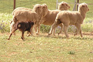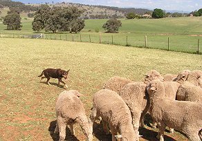 Her sire, Karrobar Moss is one of Australia's top champions and has won major sheepdog trials including the Australian National title. He is good on cattle or sheep and has had a background of mustering big mobs of sheep. He has won Yard trials, Utility farm trials and the traditional 3 sheep arena trials. He is a friendly dog and has produced very good pups over a number of our females.