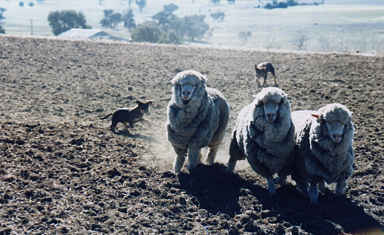 "Jessica and Luke are doing very well. ...Jessica is more intense when working, Luke wants to give more space to the sheep. At one (early) stage Jessica was very much intensive and liked to come in and pull out some wool when she had the chance but as she has matured this has changed. She now works very stylish and have not respect for any sheep She has strong walk up to the stock.