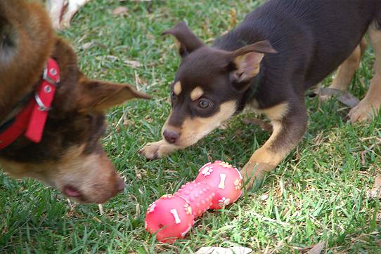 Noonbarra Brynn playing with Noonbarra Sarah.