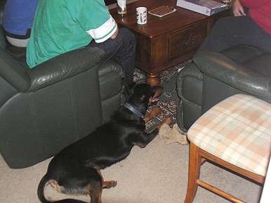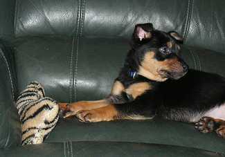 You definitely picked the right dog for us - he is so easy to be around & everybody loves him. Our next door neighbour & my Mum have minded him on occasions & they both say he is a pleasure to have. He is generally so well behaved - he doesn't dig at all & does not touch things that aren't his. He was never the type to destroy & destruct like some pups. He's always had an abundance of toys & still has a rawhide chew most evenings which must help, but I think generally its just his nature - he very much wants to please & do the right thing.