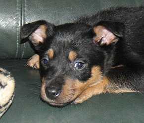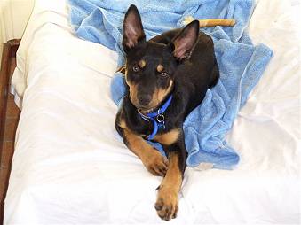 Zing was very small and adored shoelaces. It seems Zing loves people and to jump around... We all hope to see Zing later in the year when she is a full grown Kelpie. - By Sophie