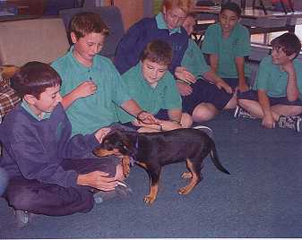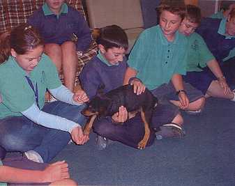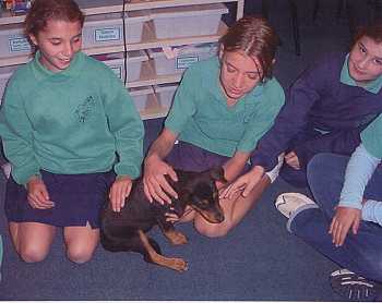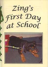 It was great when Zing came to our school and when she was running around the oval. We all ran around and gave her a pat. I thought it was funny when she was chewing on everyone's shoelaces. When Zing had to go, the grade was sad. - Tim and Alex.