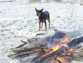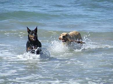 "We took her boating a few weeks ago and she had a ball but wasn’t real happy until she was up front looking out the hatch. She’s still loving the beach and chasing sticks and is getting on well with my dads 7 month old lab. They have a ball playing together and she is also calming down a lot and isn’t the freak she once was. Zing is walking well on and off the lead but at times is a wee bit hard to get off the beach and at times can be a bit embarrassing with the sounds she makes when chasing sticks on the beach but all in all she's doing great but noticing the cold a bit