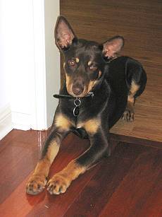 Very early on we took your advice (from your Kelpie book) about training Milo to behave well in the house. That is paying off. When Milo comes inside he goes straight to his inside bed, and doesn't even make for the cat's food dish on the way. He also recognises the command "onya bed". He'll stay there for hours unless given the command to get off. He's a beautiful, lovely boy and we love him to bits.