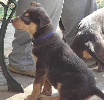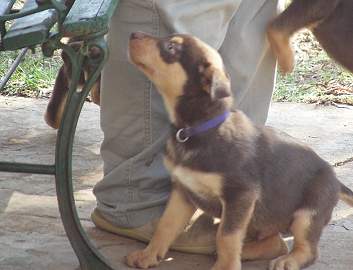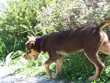 Milo travelled well yesterday. As you predicted, he spent most of the time asleep. We stopped at Cowra for lunch. It was pleasing to see how playful Milo was and how he just wanted to follow each of us every where. We started some basic obedience training then too - the lesson about not chewing on a lead. Once home Milo was happy to explore his new backyard. He showed a nice balance between being brave enough to explore, and loyal enough to want to follow us anywhere.