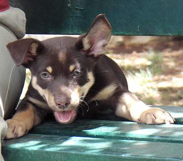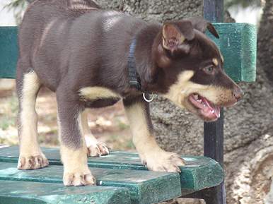 Honestly, we couldn't have asked for a better companion. He is so obedient and responds well to commands. Loves meeting people and other dogs and is very friendly. Everyone we meet comments on how friendly and well behaved he is, and how good looking ! Geoff took him to the Kelpie Muster at Casterton, and he met some relatives and a half brother. They had a great day and Geoff was pretty chuffed with all the positive comments he received about Flynn.