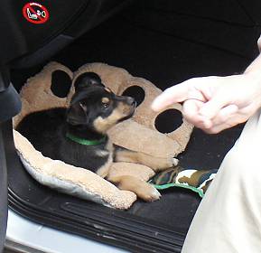 Roo loves the car and knows that it takes him to fun places, but he is also happy to come with us even if we are just going to the shops. He is fascinated with everything that goes on outside. We hardly ever hear him bark and he is very comfortable with being tied up on his lead when we go into the shops.