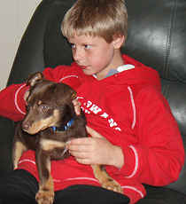 Rex is a great joy to us. He has turned into a wonderful dog. Michael just loves playing with him and Rex delights in games of soccer. (He cheats though by picking up the ball in his mouth!). When Michael has friends over Rex gets so excited to have someone else to play with and the kids don’t have any problems playing with him. Another treat for Rex is a trip to the kennels where he gets to play with other dogs. The owners of the kennels say he doesn’t stop and loves to run around all the time.