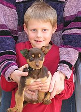 Michael in August 2005 playing with one of our puppies on a visit to the Noonbarra Stud.