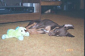 "The pups are a delight and we enjoy them more every day. Doolin is such a lover. He wants to snuggle up all the time. Gabby does so when she sees him getting too much attention."