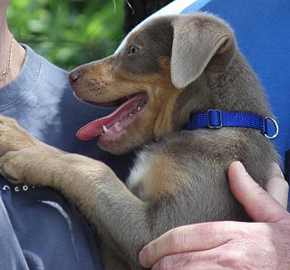" We are happy to wait for the right pup. We have both fallen in love with that unusual silver colour and are happy to wait for that to crop up again, we get so many comments about our dingo, goodness knows what people would do if we had a blue or silver one too!!!