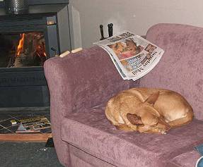 Noonbarra Frankie always gets the spot near the fire