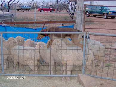 "About a month ago, Pedro learned on his own how to jump sheep panels. Yesterday, I packed a couple of ewes behind a portable panel and within a few minutes he learned to jump from the outside, up over the panel and light on the ewes backs. I don't know who was happier - Pedro or me. He went from their backs to the ground and he wanted to stay in there with them. Those ewes are stout and to avoid any potential wreck in that small area, I put him out and let him back them several more times. I was amused how he puts his clown face on while backing."