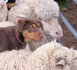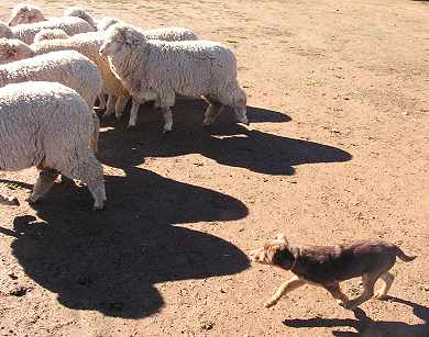 "I recently gathered sheep out in the paddock and he held them all rather well. There were babies in the herd and he kept his distance. Some dogs like nothing better than to chase a baby far away in the brush away from its mamma. Pedro will figure it all out in due time. We're having fun, too."