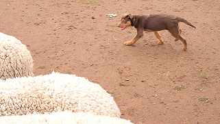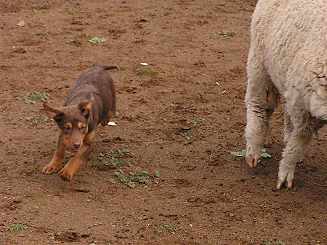 Noonbarra Pedro was very comfortable backing sheep in the stockyards from just 8 weeks old
