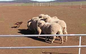 "Hello Bilsons, My oldest brother wanted to see Pedro and I let him in with 7 billy kids. Pedro did a wonderful job. His distance, cover, strength, and eye were all in place. My wife commented that he appears to be a problem solver. I better step on my brakes. You, as well as my Dad, have reminded me to let this pup mature. I bet he'll do things that folks over here have never seen before. I suppose herders from down under see good dogs all the time, but one doesn't see many over here, not doing real work out on the range anyway."