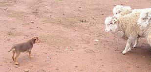 "I think Pedro is going to be a very strong dog. A mamma ewe went for him and her sharp hoof came down hard on Pedro's foreleg. Pedro yelped and then immediately went to her nose. Today, Pedro will still lay it on the line, but only if he has to. He did the same when a young nanny gave him a cheap shot from behind."