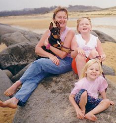 Bev holding Noonbarra Ruby with her daughters Amy and Emily