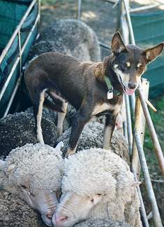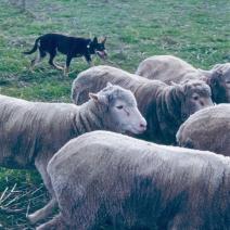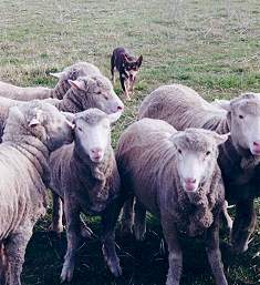 But Valerie was a lot more in her heyday than a family companion. She was an outstanding working dog. It is not very often you get a steady, calm worker that also has plenty of strength. Valerie is wonderful at lifting wild sheep - she tends not to upset them. In most cases the sheep just quietly move off without any stress. If they want to fight then Noonbarra Valerie will come right in. If they attack her she will snap at the nose or bark. She is also a handy yard dog but doesn't have much experience in the yards. Her real worth is out in the paddock. She often works mobs of sheep for us, droving as well as bringing them along to us. She has a nice balance of strength and gentleness.