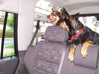 Noonbarra Calis travelling in van